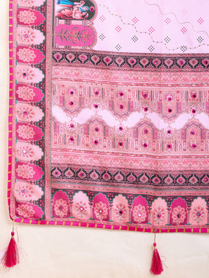 Baby Pink Fancy Muslin Cotton Saree With Digital Printed Work