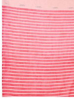 Baby Pink Linen Cotton Saree With Digital Printed Work And Silver Zari Border