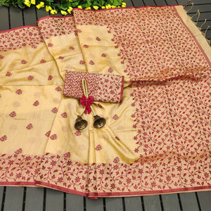 Beige Color Khadi Raw Silk Saree With Jamdani Weaving Border