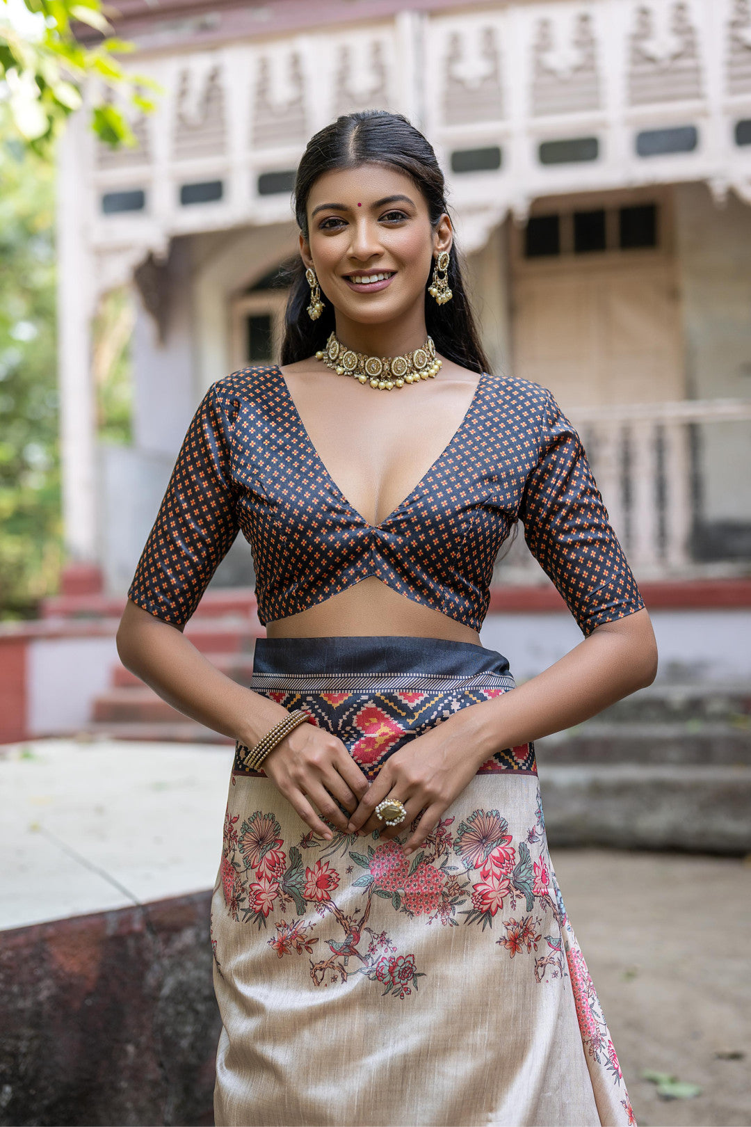 Black Color Soft Tussar Silk Saree With Patola Printed Work
