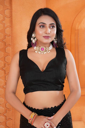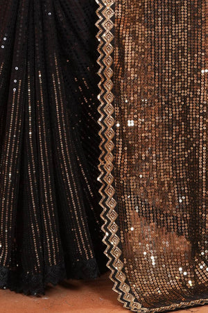 Black Fancy Georgette Saree With All Over Sequence Work And Lace Border