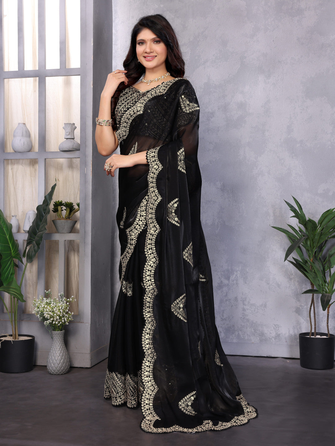 Black Fancy Shimmer Chiffon Saree With Embroidery Work