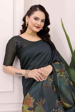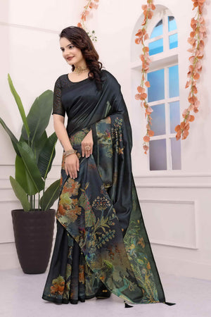 Black Kalamkari Printed Premium Tussar Silk Saree