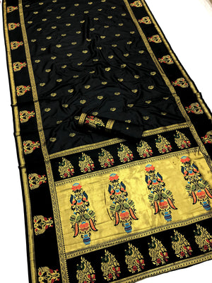 Black Paithani Silk Saree With Meenakari Zari Weaving Work