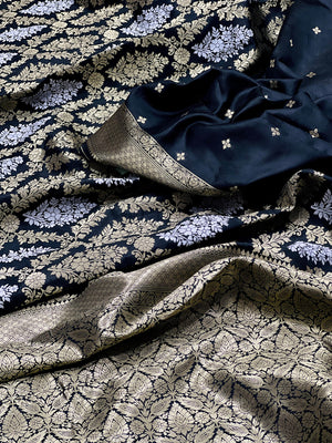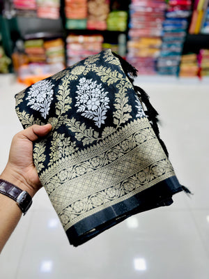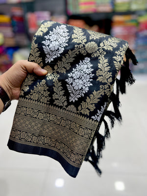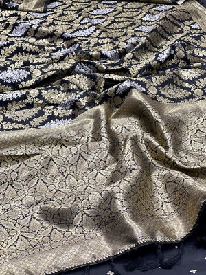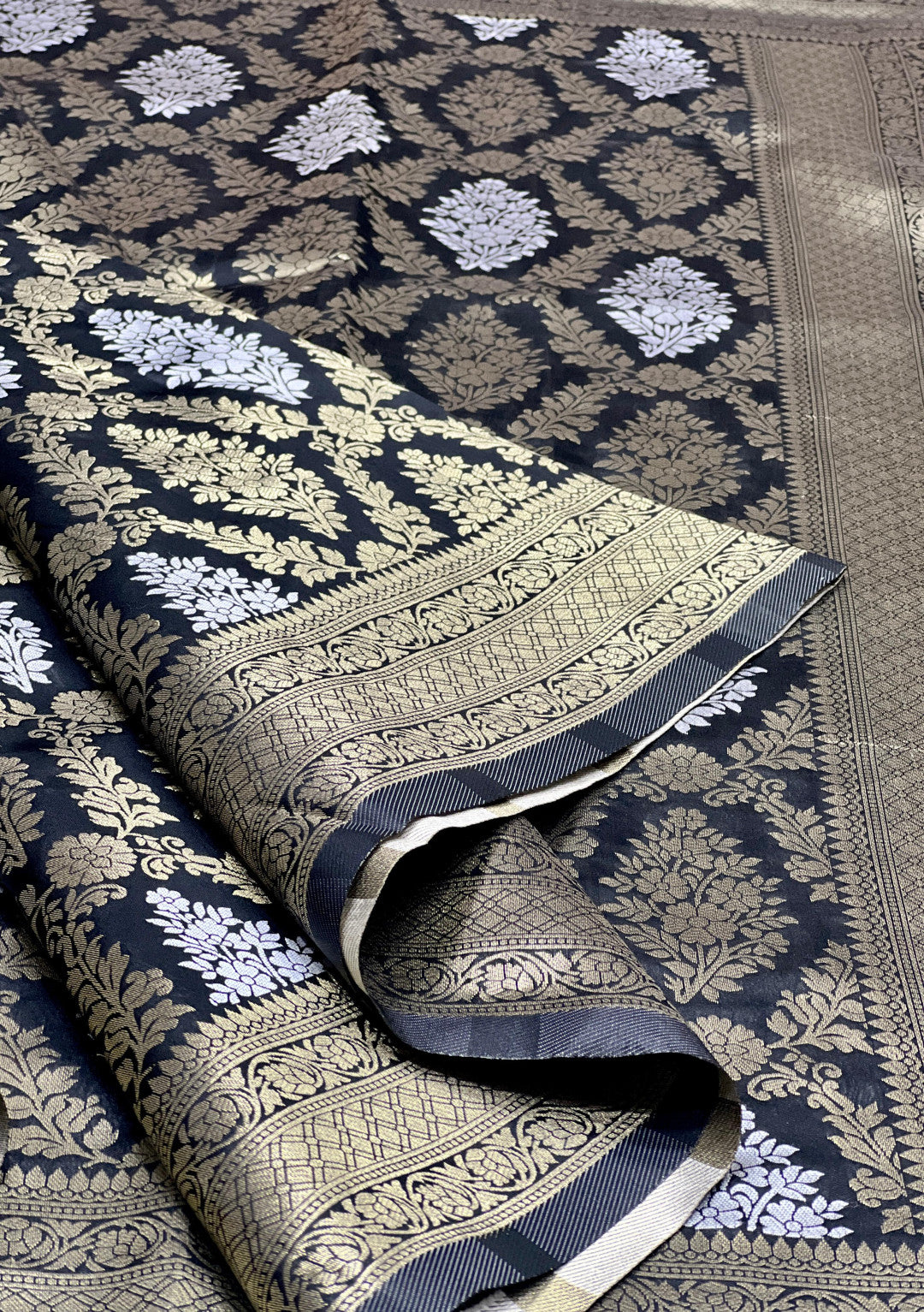 Black Premium Banarasi Katan Silk Saree With Zari Weaving Work