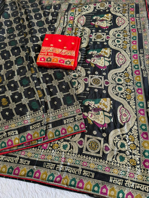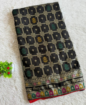 Black Viscose Silk Saree With Meenakari Zari Weaving Work With Contrast Piping