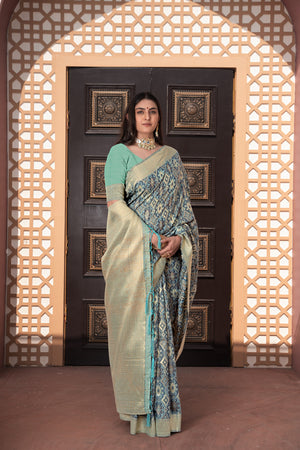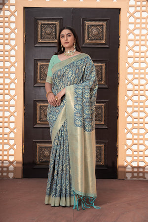 Blue Cotton Ikkat Silk Saree With Zari Woven Work