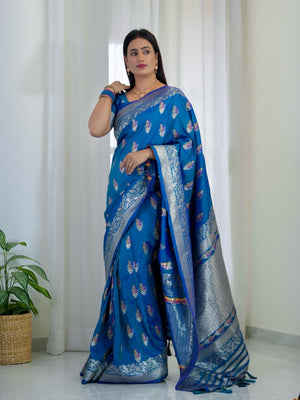 Blue Pure Soft Banarasi Saree With Meenakari Weaving Work