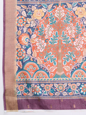 Blue Soft Cotton Saree With Kalamkari Digital Printed Pallu & Zari Border