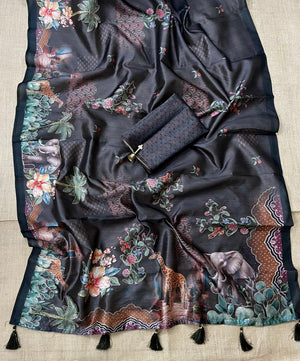 Brown Kalamkari Printed Premium Tussar Silk Saree