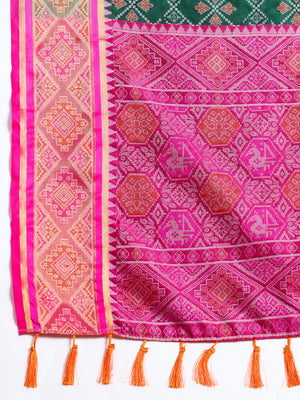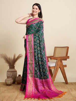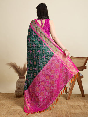 Dark Green Traditional Patola Silk Saree With Weaving Work