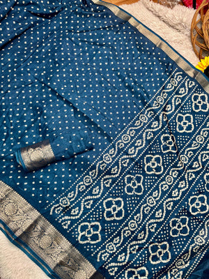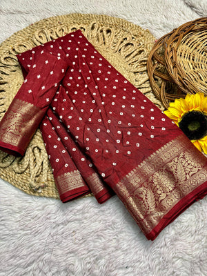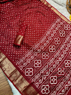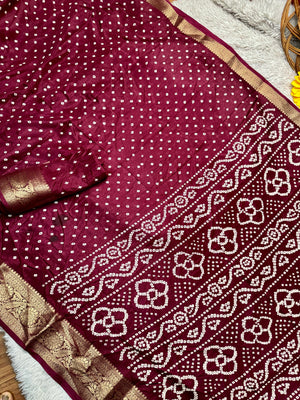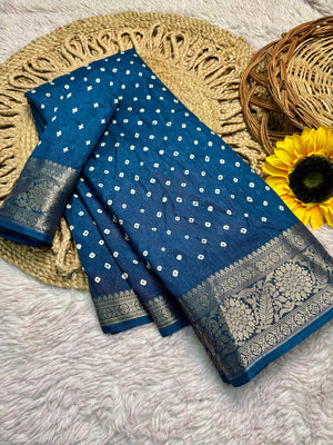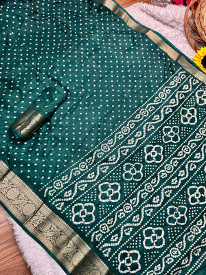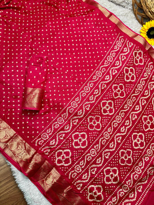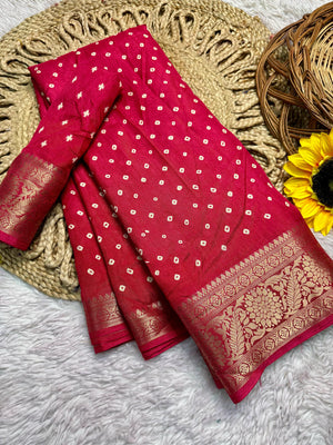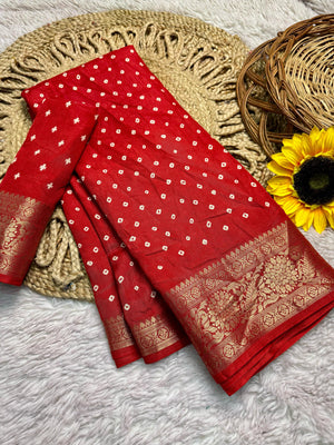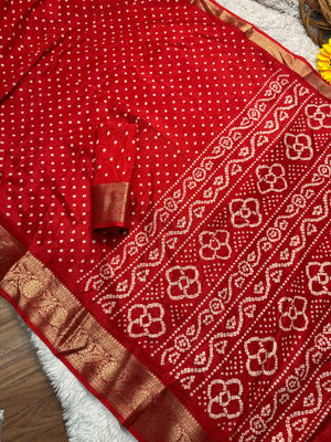 Dola Silk Bandhej Saree With Zari Border