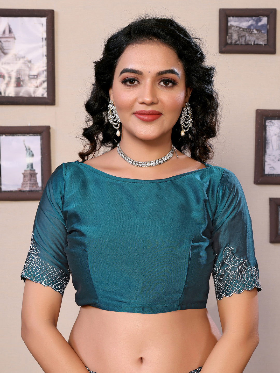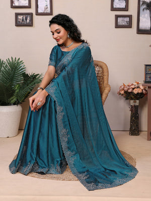 Fancy Firoji Rangoli Silk Saree With Diamond Work