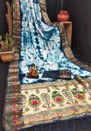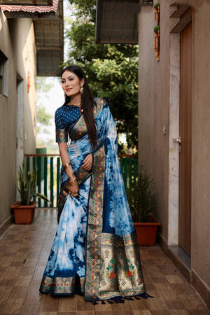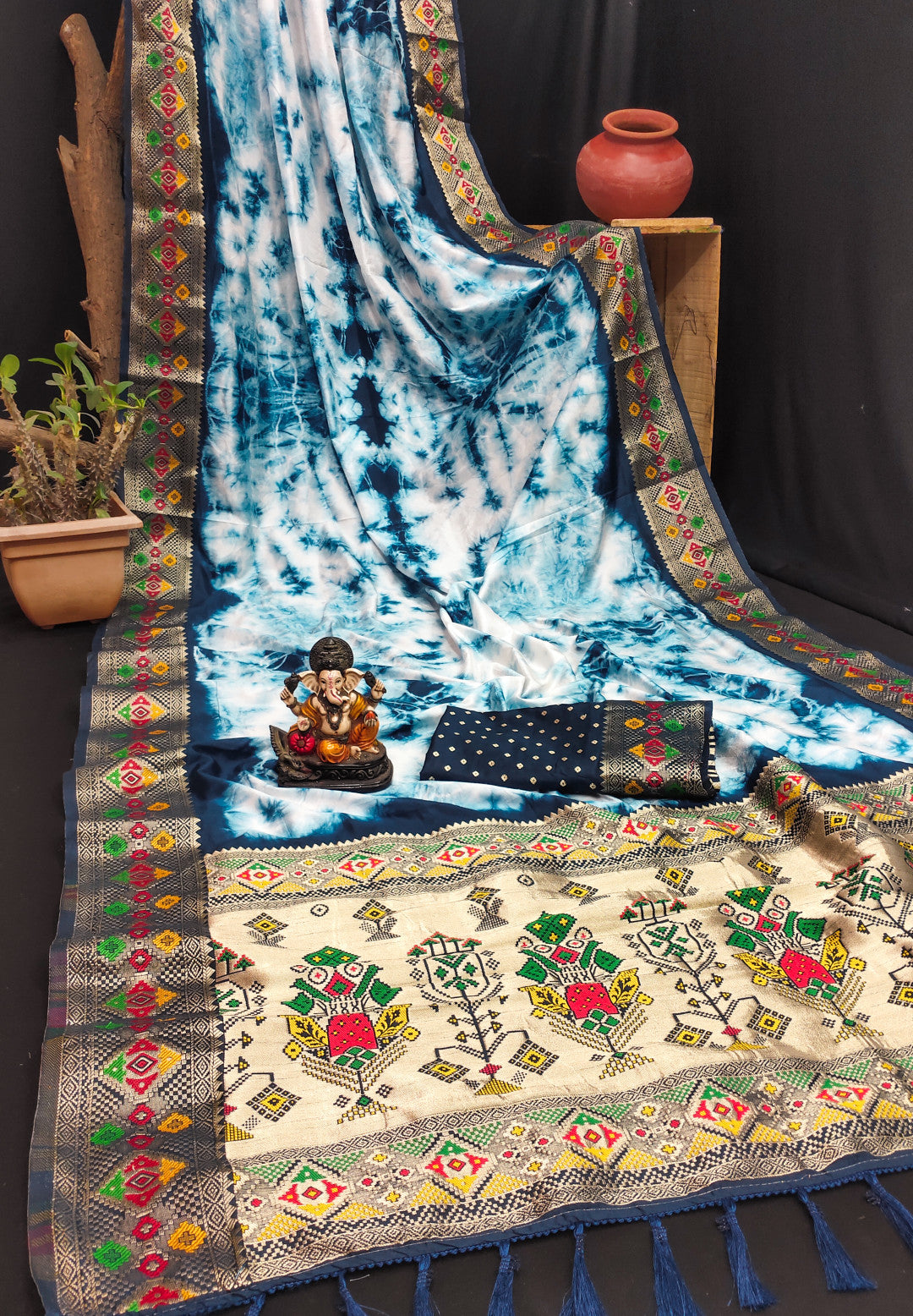 Firoji Color Dola Silk Saree With Shibori Printed Work