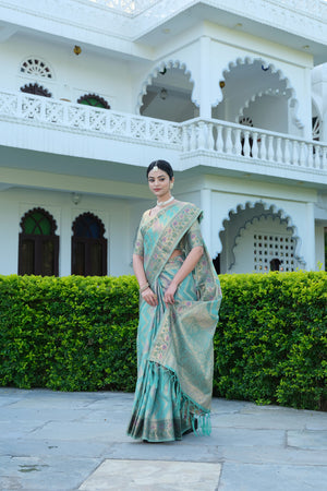 Firoji Color Soft Organza Silk Saree With Zari Weaving Work