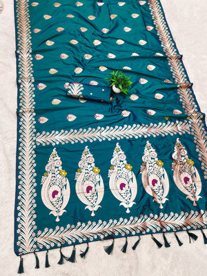 Firoji Traditional Banarasi Silk Saree With Zari Weaving Work