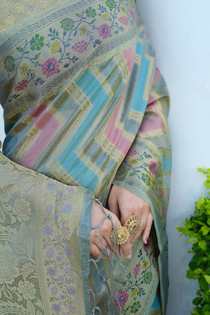 Gray Color Soft Organza Silk Saree With Zari Weaving Work