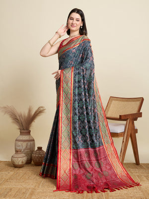 Gray Traditional Patola Silk Saree With Weaving Work