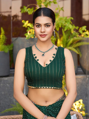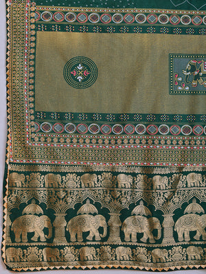 Green Stylist Soft Cotton Saree With Unique Table Printed & Lace Border