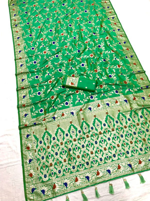 Light Green Banarasi Silk Saree With Meenakari Zari Weaving Work