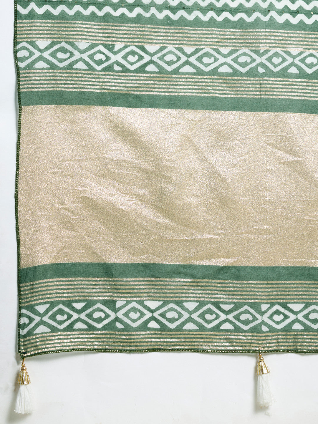 Light Green Batik Printed Soft Cotton Saree With Sequence Work