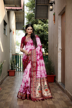 Magenta Color Dola Silk Saree With Shibori Printed Work