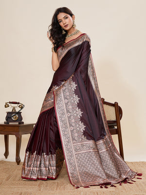 Magenta Soft Satin Silk Saree With Gala Border And Zari Weaving Work