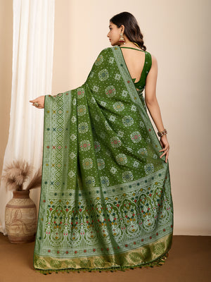 Mahendi Green Traditional Muslin Dola Silk Saree With Meenakari Zari Weaving Work