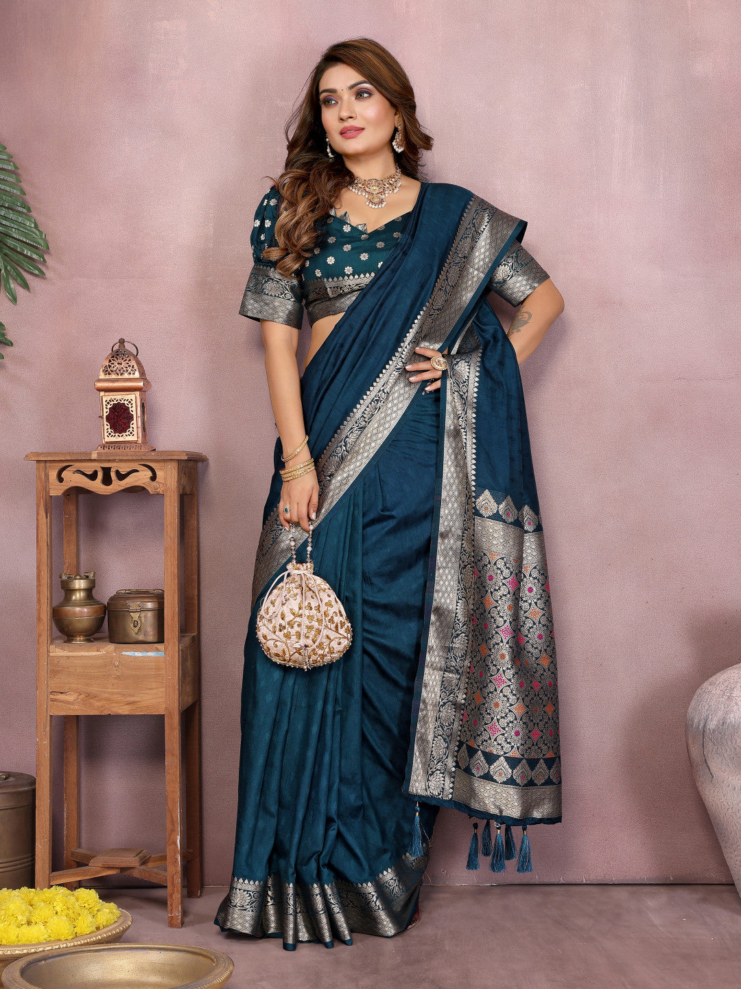 Morpeach Premium Dola Silk Saree With Meenakari Weaving Work