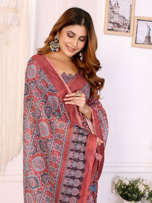 Multi Colour Chanderi Cotton Saree With Digital Printed Work