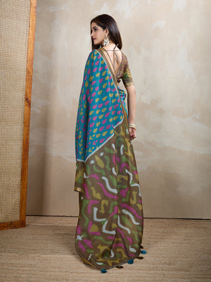 Multi Colour Chanderi Cotton Saree With Digital Printed Work