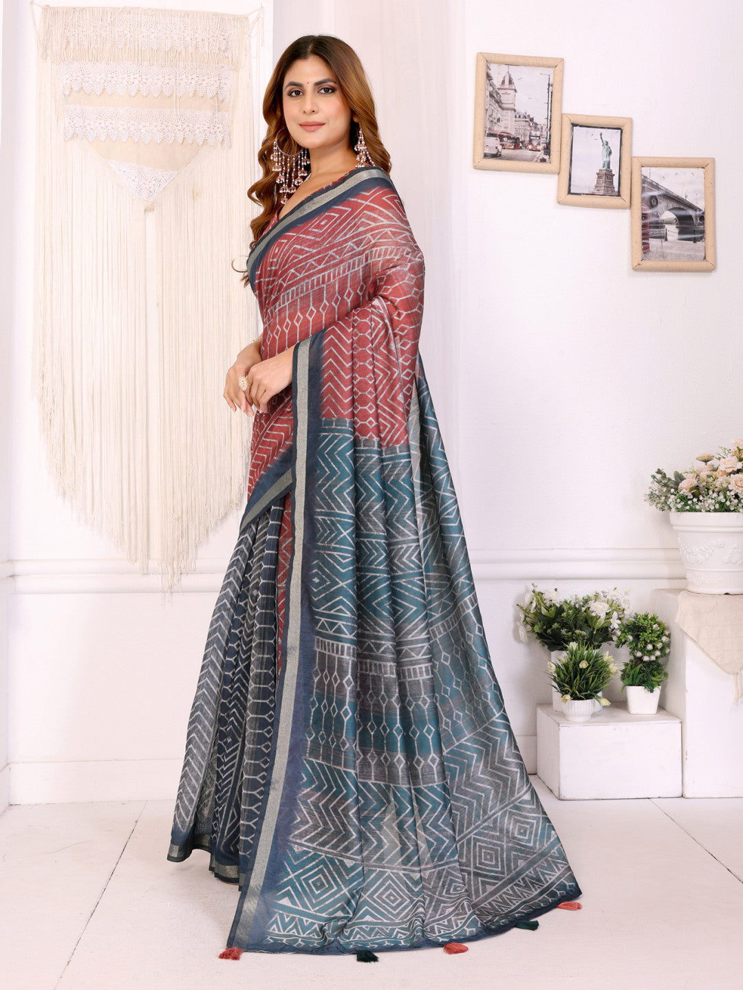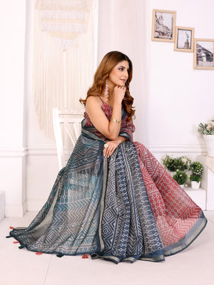 Multi Colour Chanderi Cotton Saree With Digital Printed Work