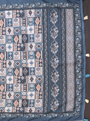Multi Colour Chanderi Cotton Saree With Digital Printed Work
