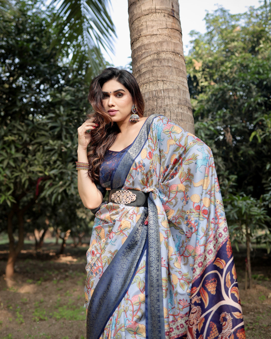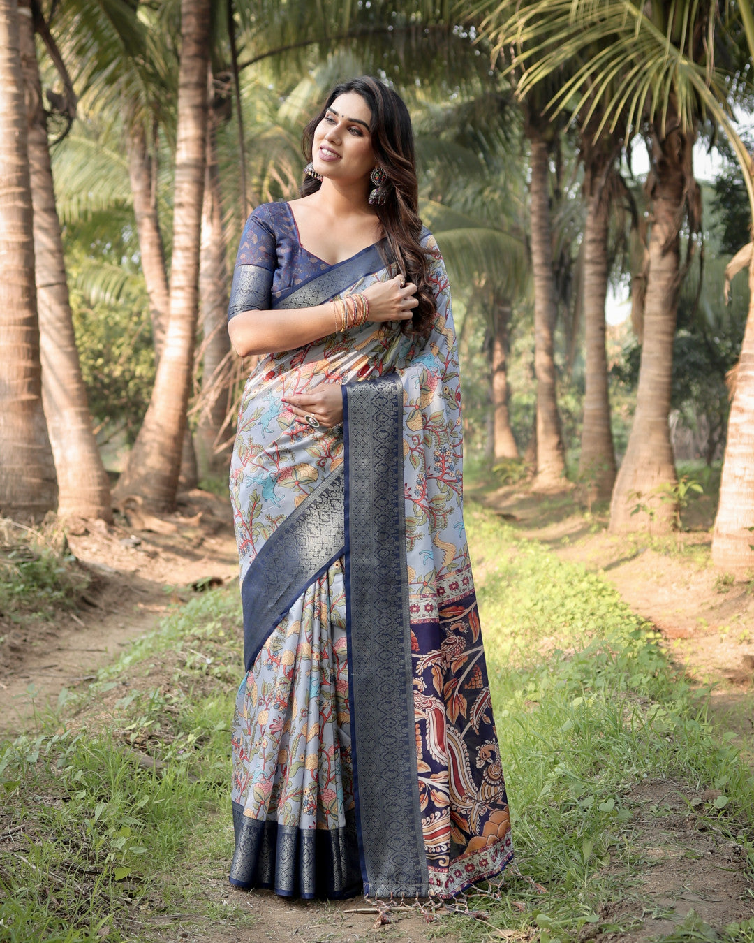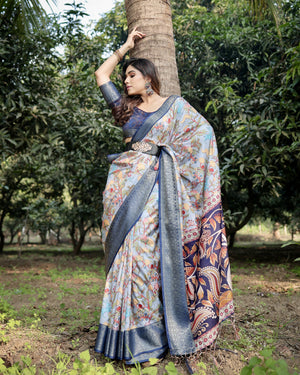 Multi Fancy Kalamkari Digital Printed Tussar Silk Saree