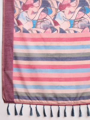 Multi Soft Linen Cotton Saree With Floral Printed Work