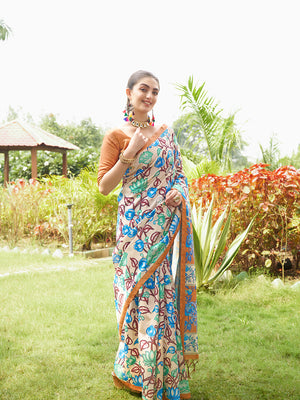 Mustard Yellow Kalamkari Printed Designer Tussar Silk Saree