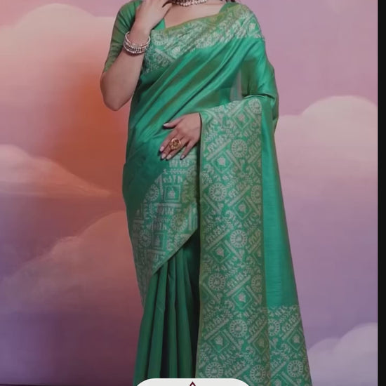 Navy Blue Color Handloom Raw Silk Saree With Contrast Weaving Work