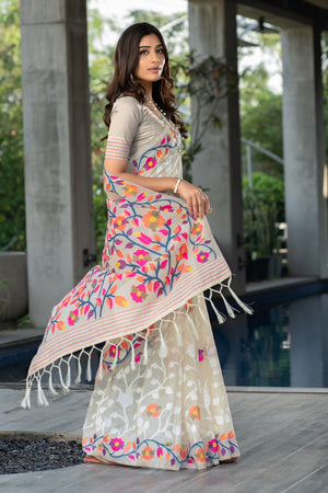 Off White Color Soft Jamdani Cotton Saree With Woven Design