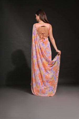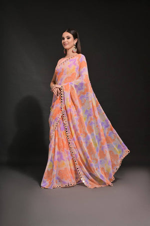 Orange Fancy Chiffon Silk Saree With Prizam Printed Work And Foil Mirror Work Border