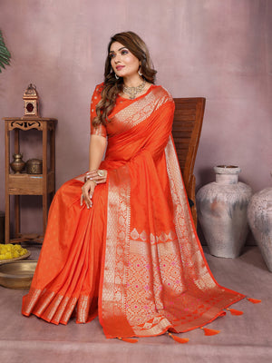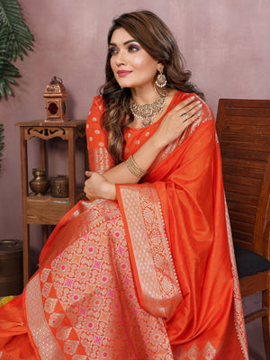 Orange Premium Dola Silk Saree With Meenakari Weaving Work