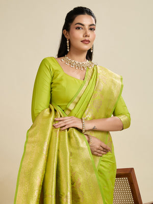 Parrot Green Kanjivaram Silk Saree With Zari Weaving Border & Designer Rich Pallu