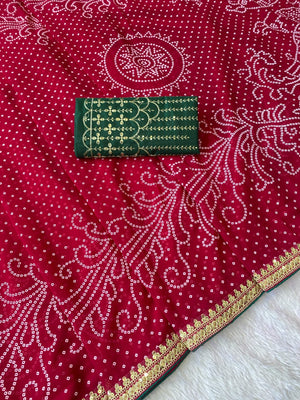 Pink Color Georgette Bandhani Saree With Foil Print Work