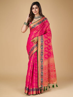 Pink Color Patola Silk Saree With Zari Weaving Work