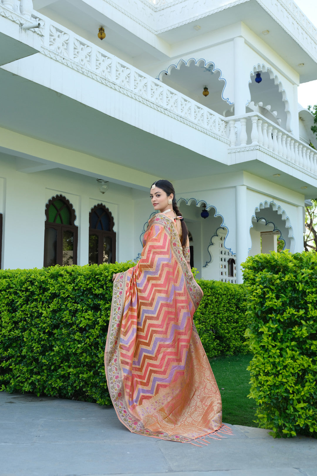Pink Color Soft Organza Silk Saree With Zari Weaving Work