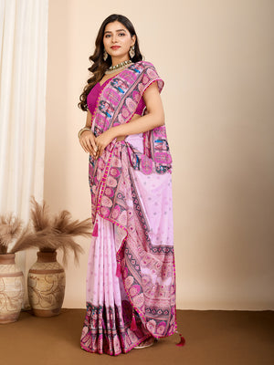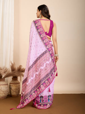 Pink Fancy Muslin Cotton Saree With Digital Printed Work