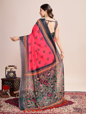 Pink Soft Linen Cotton Saree With Digital Printed Work