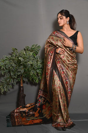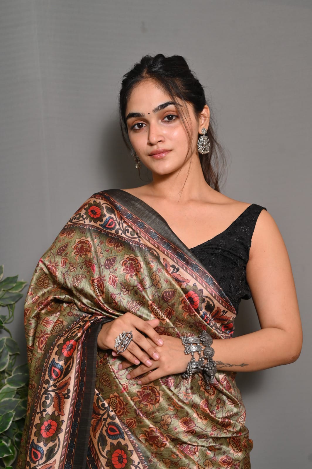 Pista Green Color Soft Silk Saree With Kalamkari Digital Printed Work