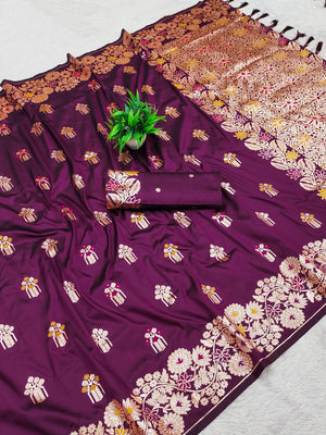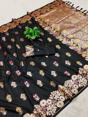 Premium Banarasi Silk Saree With Meenakari Zari Weaving Work
