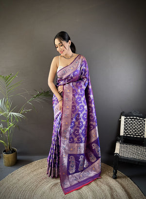 Purple Banarasi Silk Saree With Meenakari Zari Weaving Work