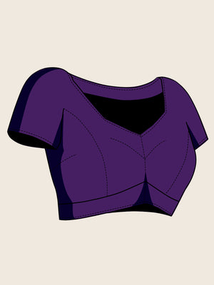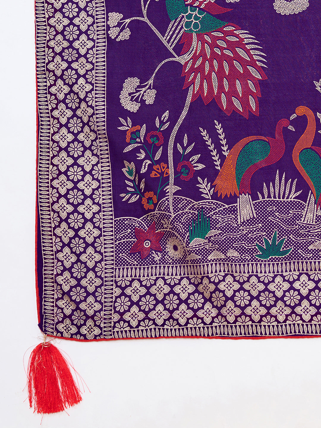 Purple Cotton Saree With Table Printed And Foil Work With Pipeing Border